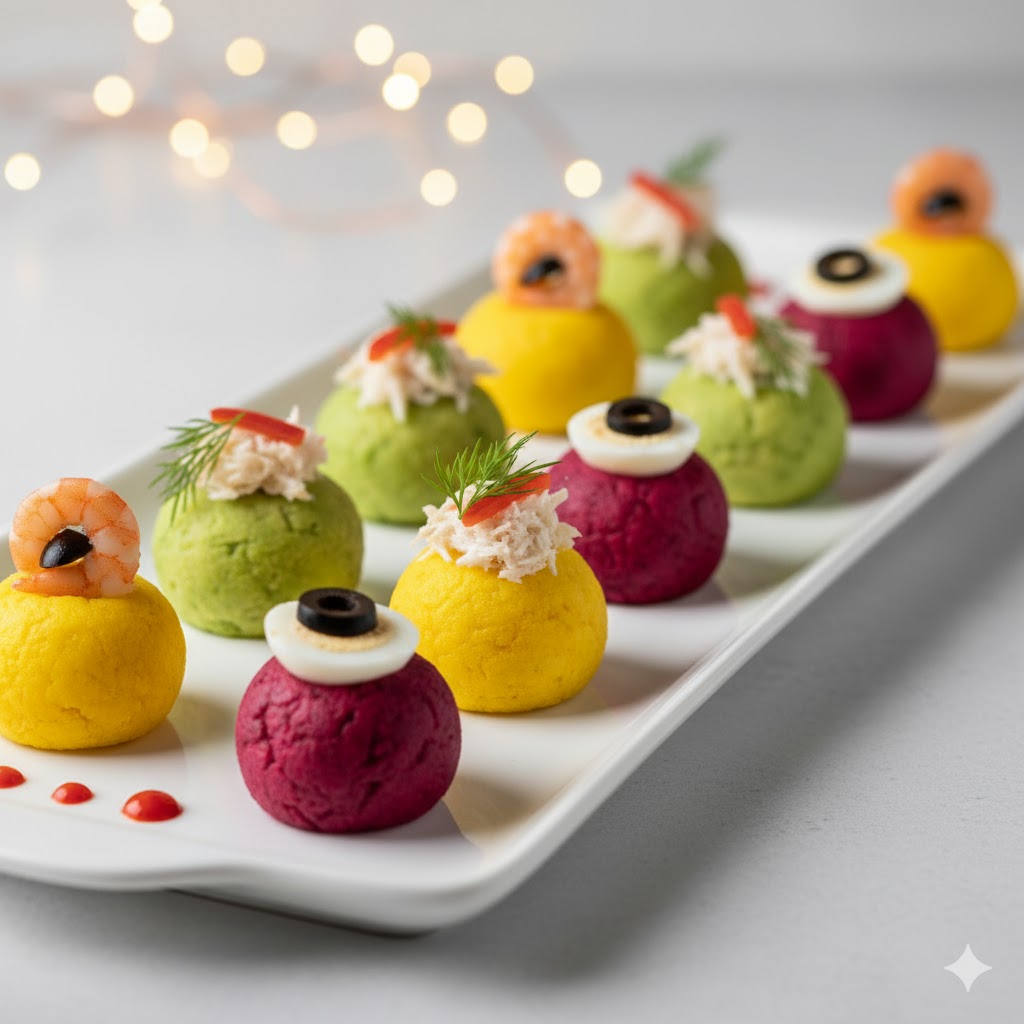Mini causa limeña rellena de pollo o atún.