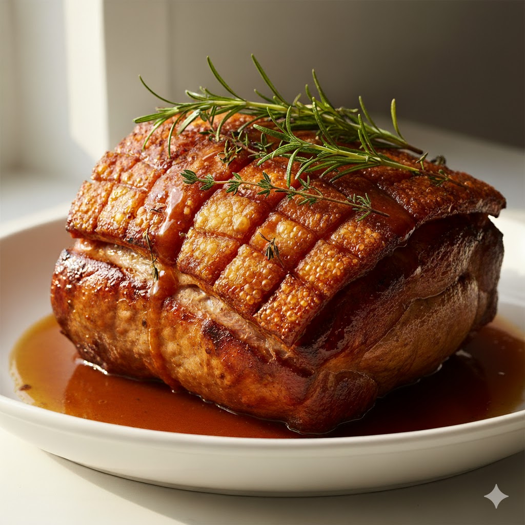 Carne de cerdo horneada lentamente, jugosa por dentro y crocante por fuera. Acompañada de su salsa especial de la casa.