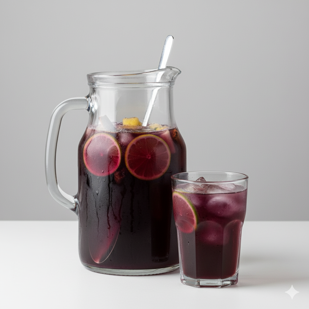 Refrescante bebida peruana elaborada con maíz morado, frutas y especias aromáticas.