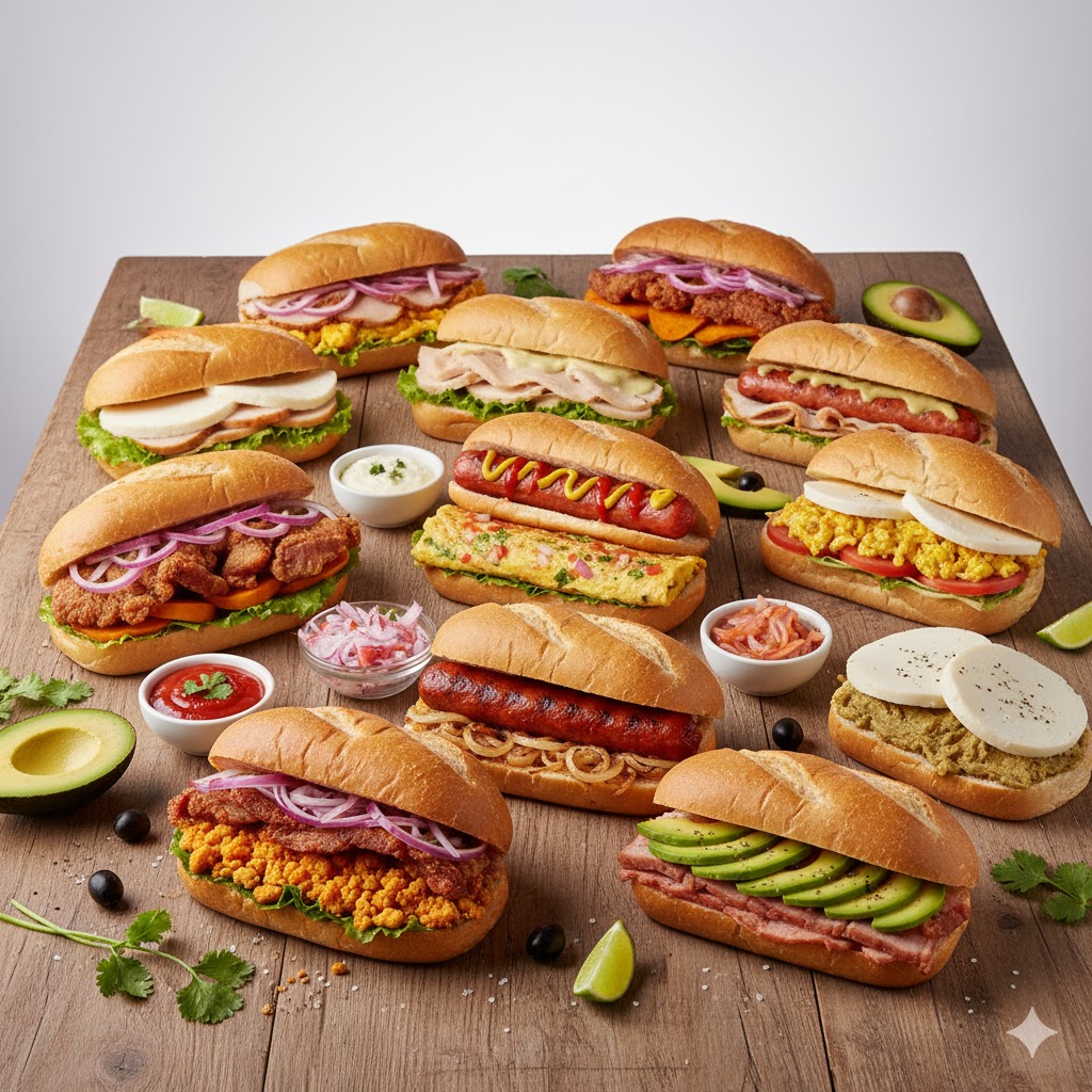 Clásicos de jamón, queso, huevo y palta, pollo con durazno.