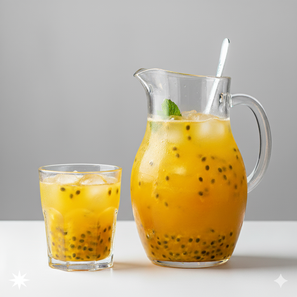 Jugo natural y vibrante de maracuyá, con el equilibrio perfecto entre dulce y ácido.