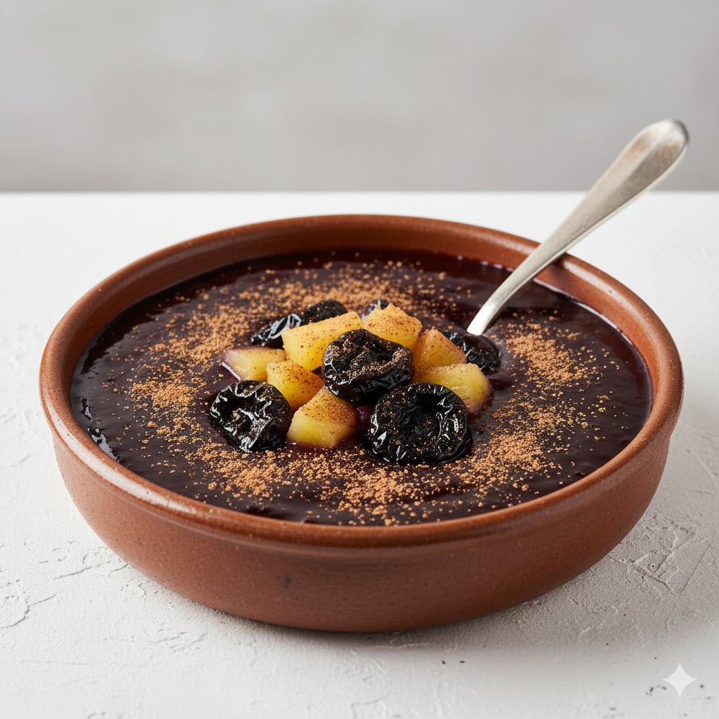 Tradicional postre peruano preparado con maíz morado, fruta fresca y especias aromáticas como canela y clavo. De textura suave y sabor intenso.