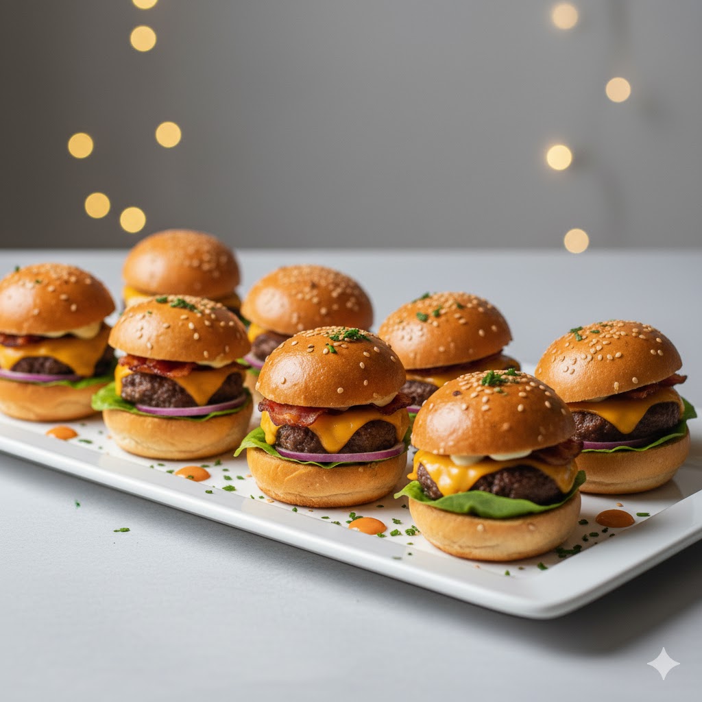 Pequeñas, jugosas y llenas de sabor. Pan suave, carne bien sazonada y toppings clásicos.